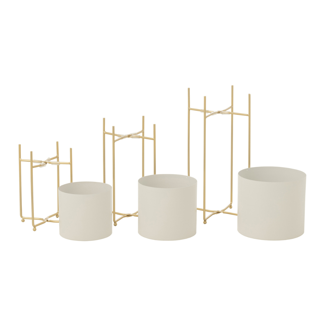 Bloempotten - Rond - IJzer - Goud/ Wit - Set van 3