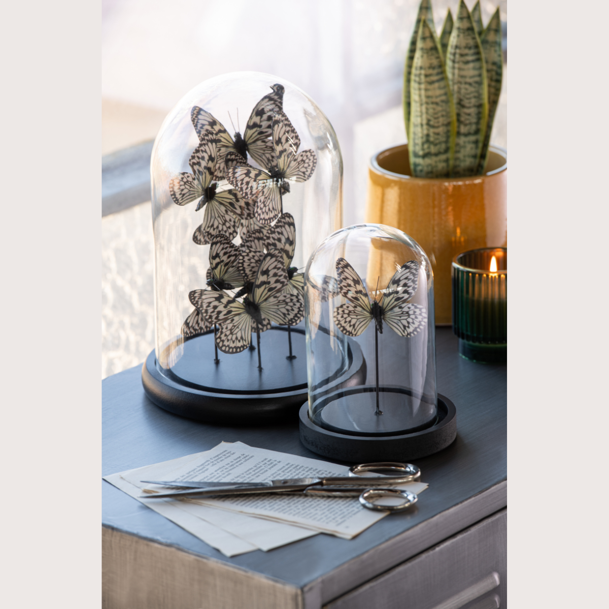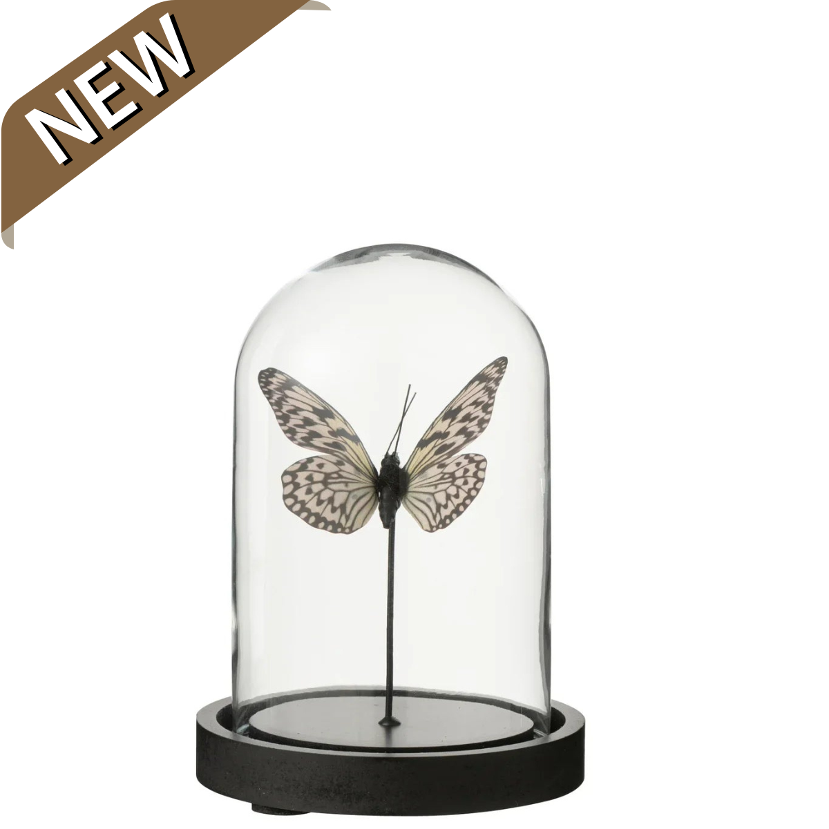Decoratieve Stolp Vlinder Glas Zwart/ Wit Small