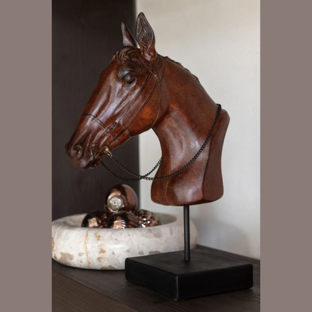 Paard Hoofd Op Voet Polyresin Donkerbruin Large
