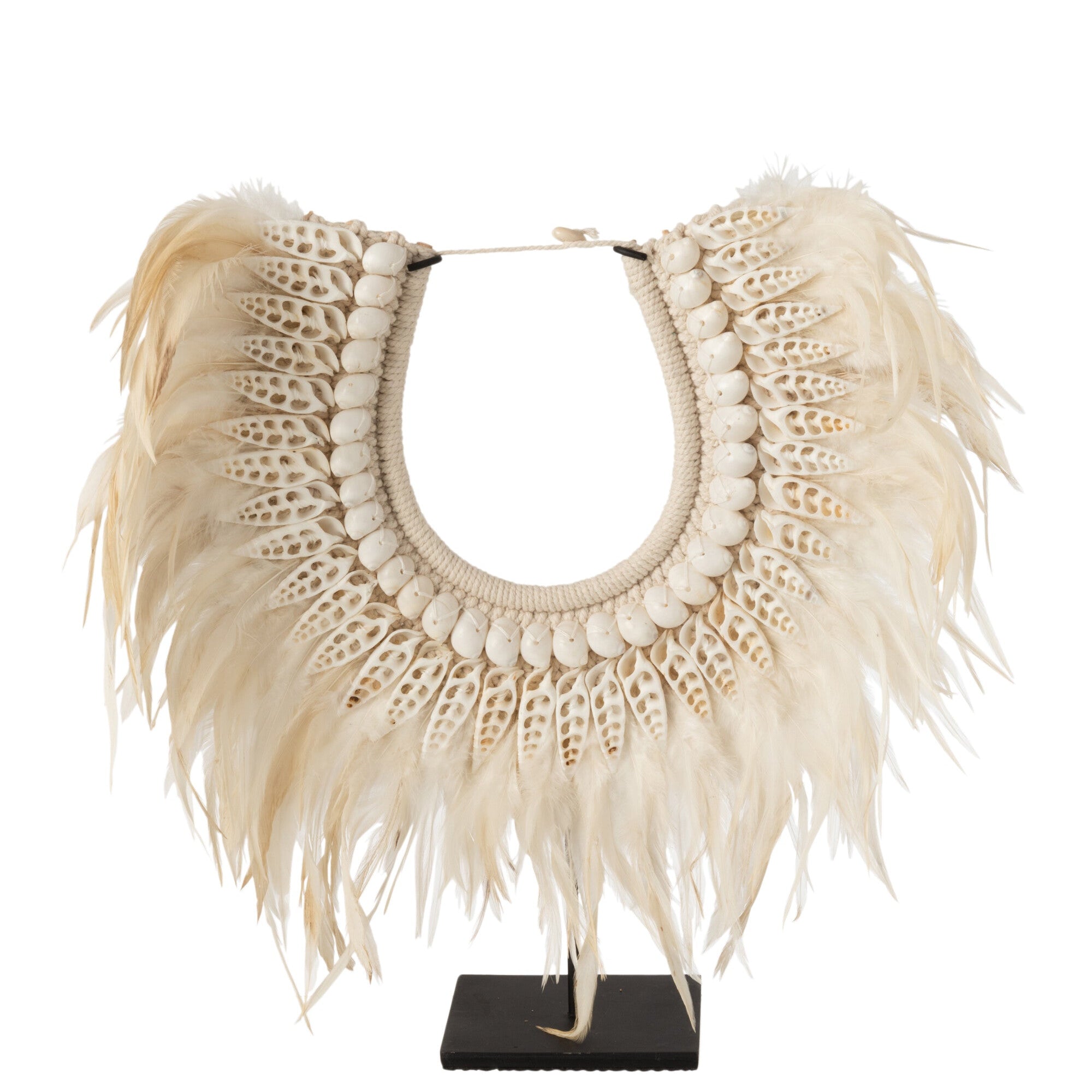 Schelpenketting + Op Standaard - Dora - Schelpen/ Veren - Wit - L