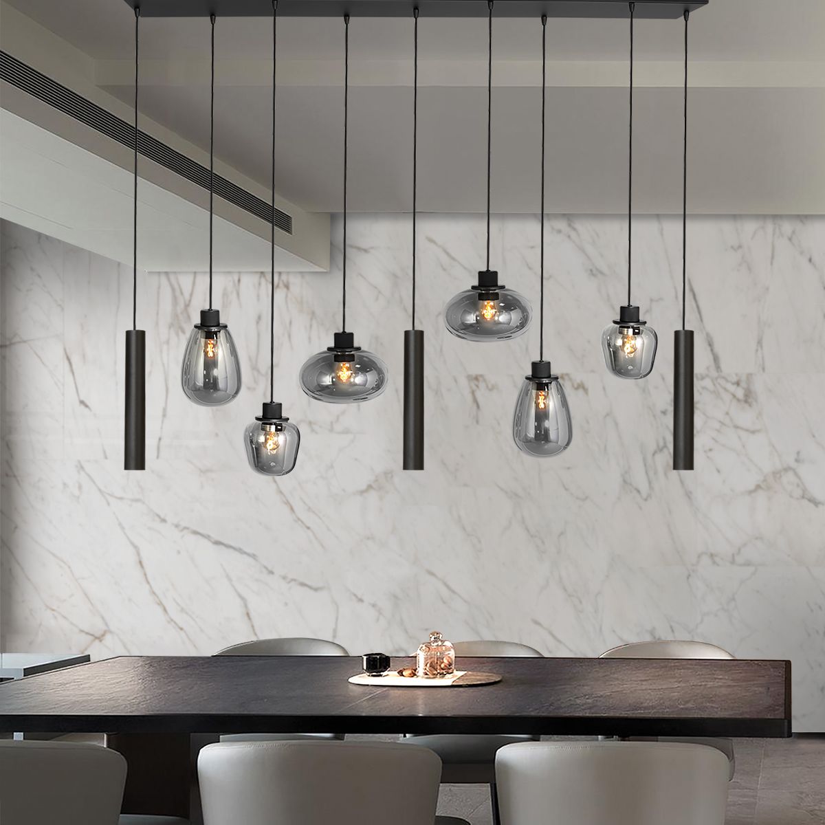 Upgrade je interieur met de Zwarte Hanglamp Reflexion 3796ZW, een 9-lichts hanglamp met allure. Deze lamp heeft 6 smokekleurige glazen bollen met E27 fitting en 3 kokers met GU10 fitting. De kokers zorgen voor direct licht op de tafel, terwijl de glazen de hele ruimte verlichten. De glazen hebben 3 verschillende vormen, zijn subtiel spiegelend en worden geleverd zonder lichtbron.