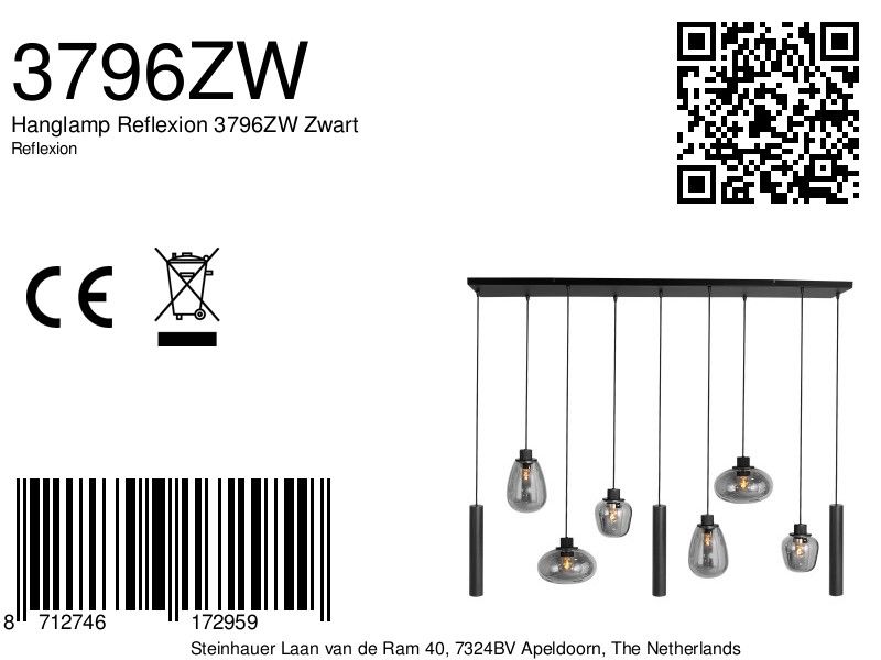 Hanglamp - Reflexion - 3796ZW - Zwart - 9 Lichts