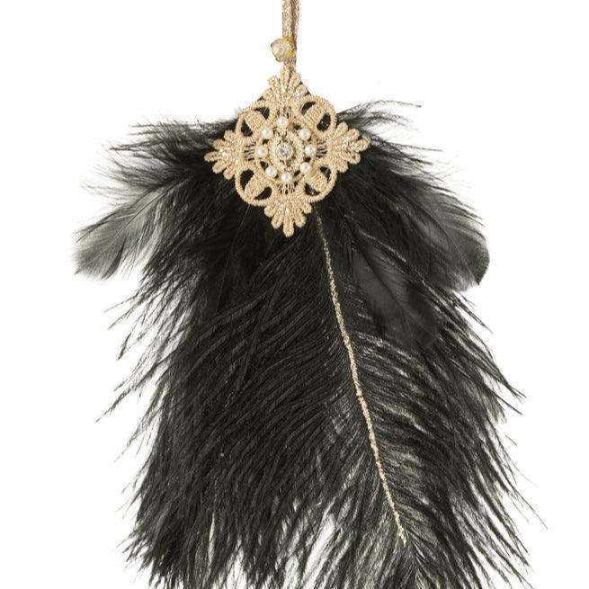 Kersthanger - Veren/ Steentjes - Zwart/ Beige