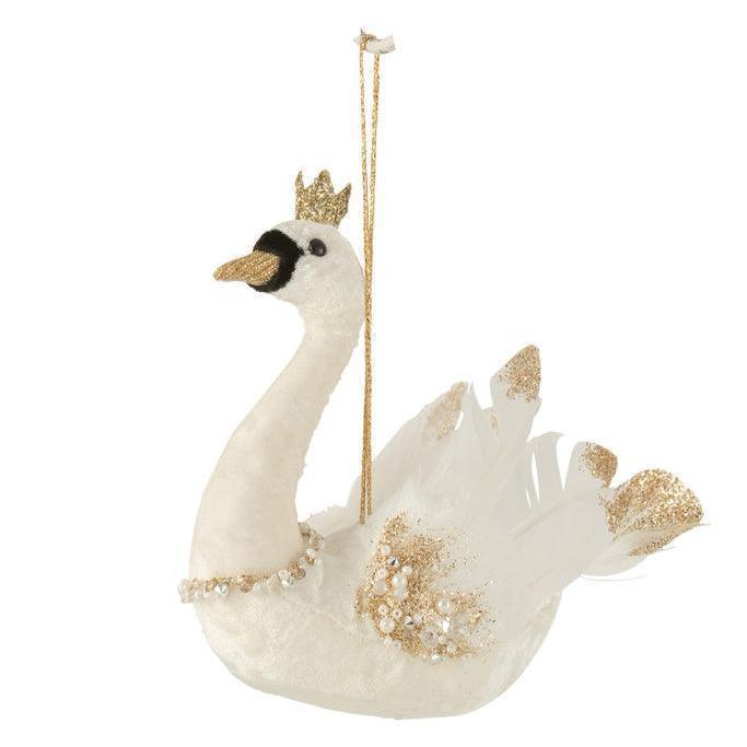 Kersthanger - Zwanenveren - Fluweel - Ecru/ Goud