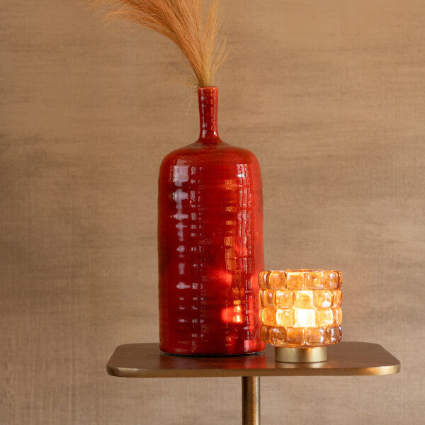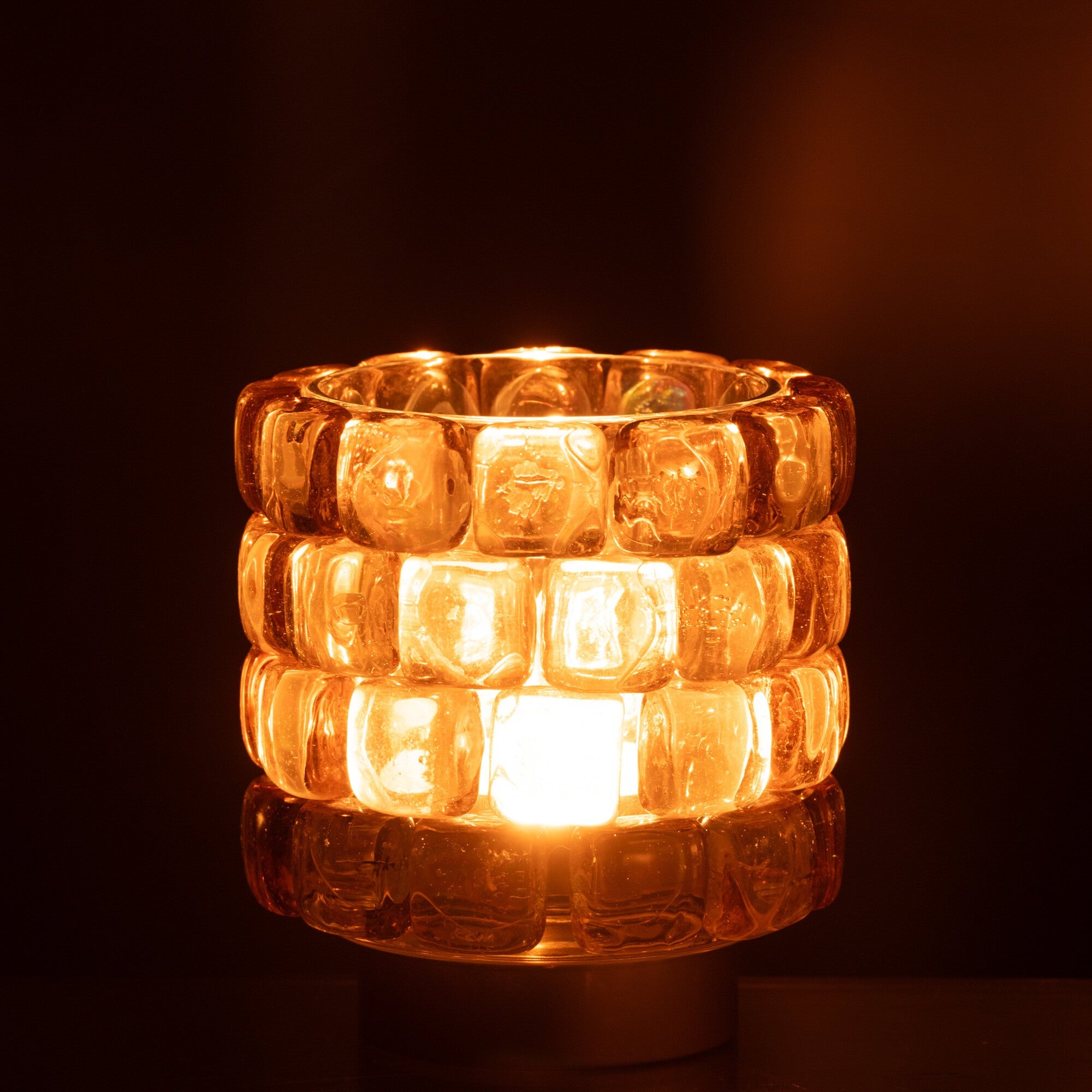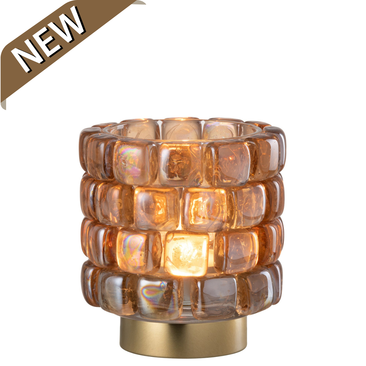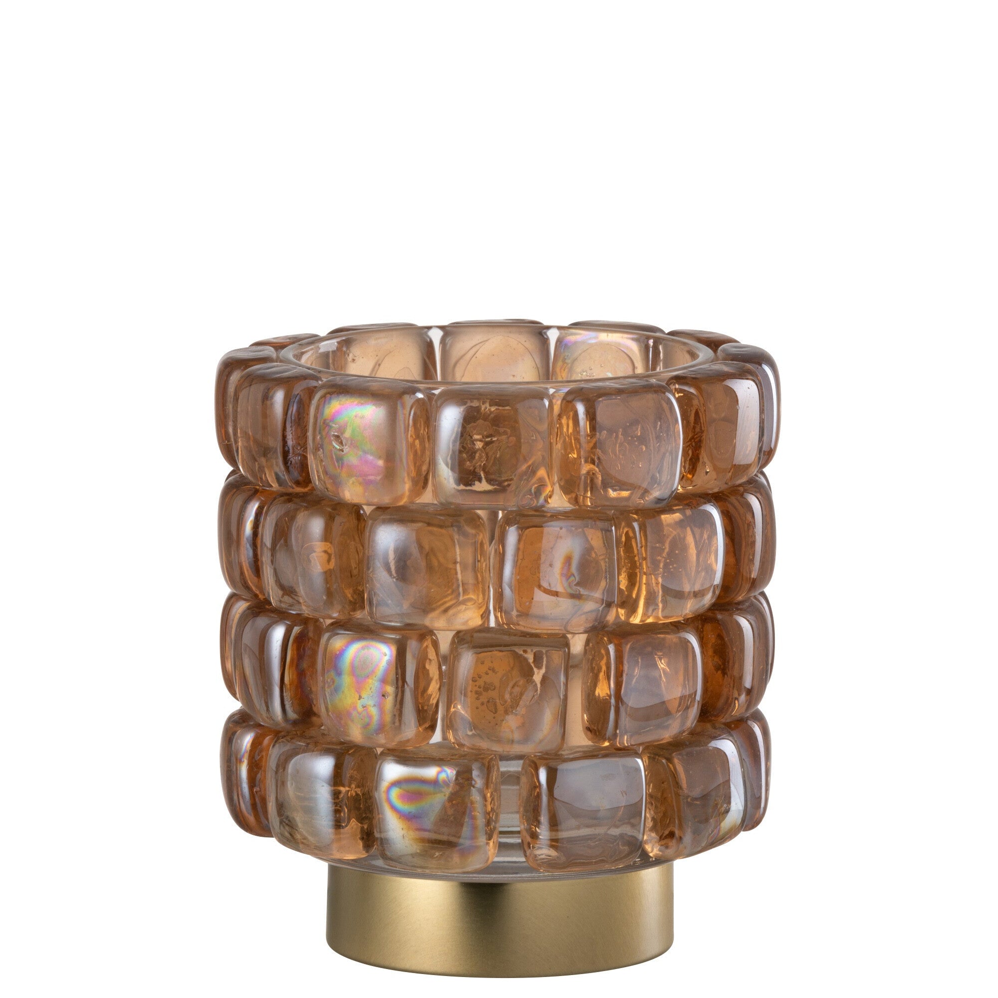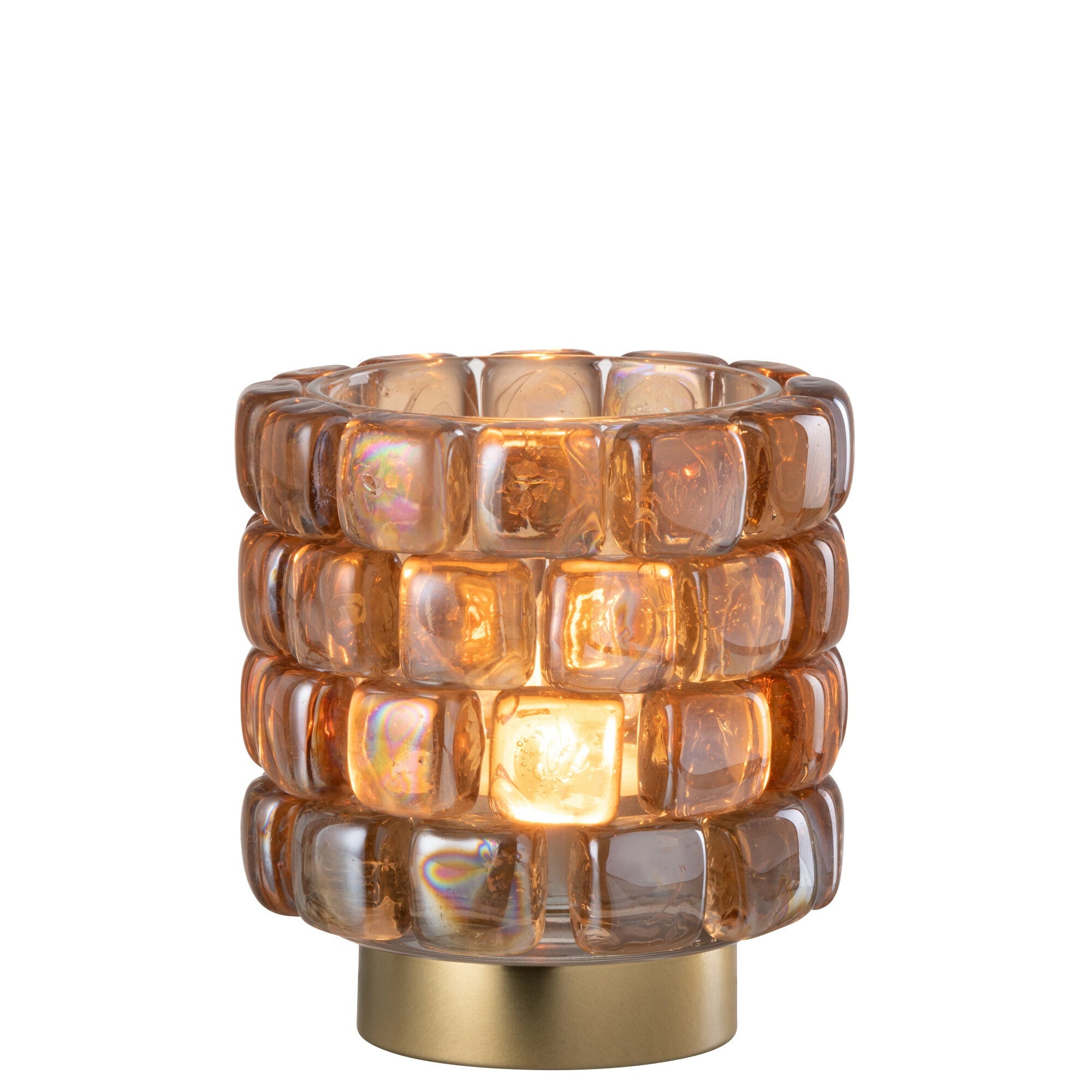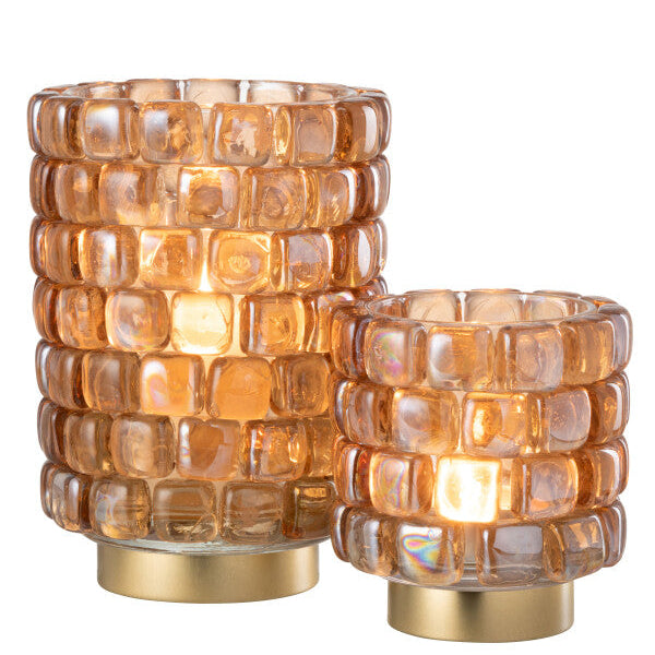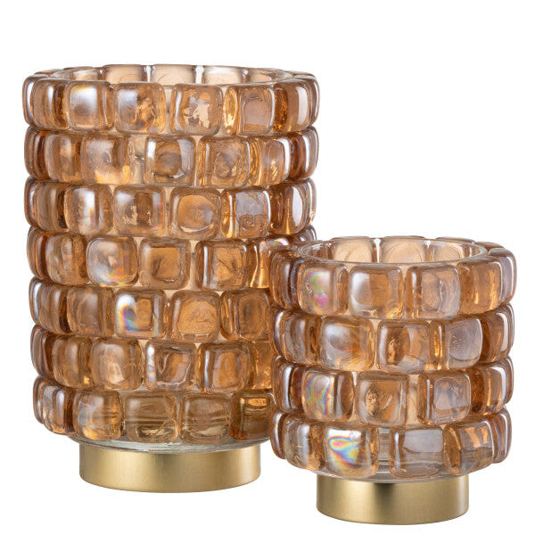 Theelichthouder Vierkant Mozaïek Glas Cognac Klein