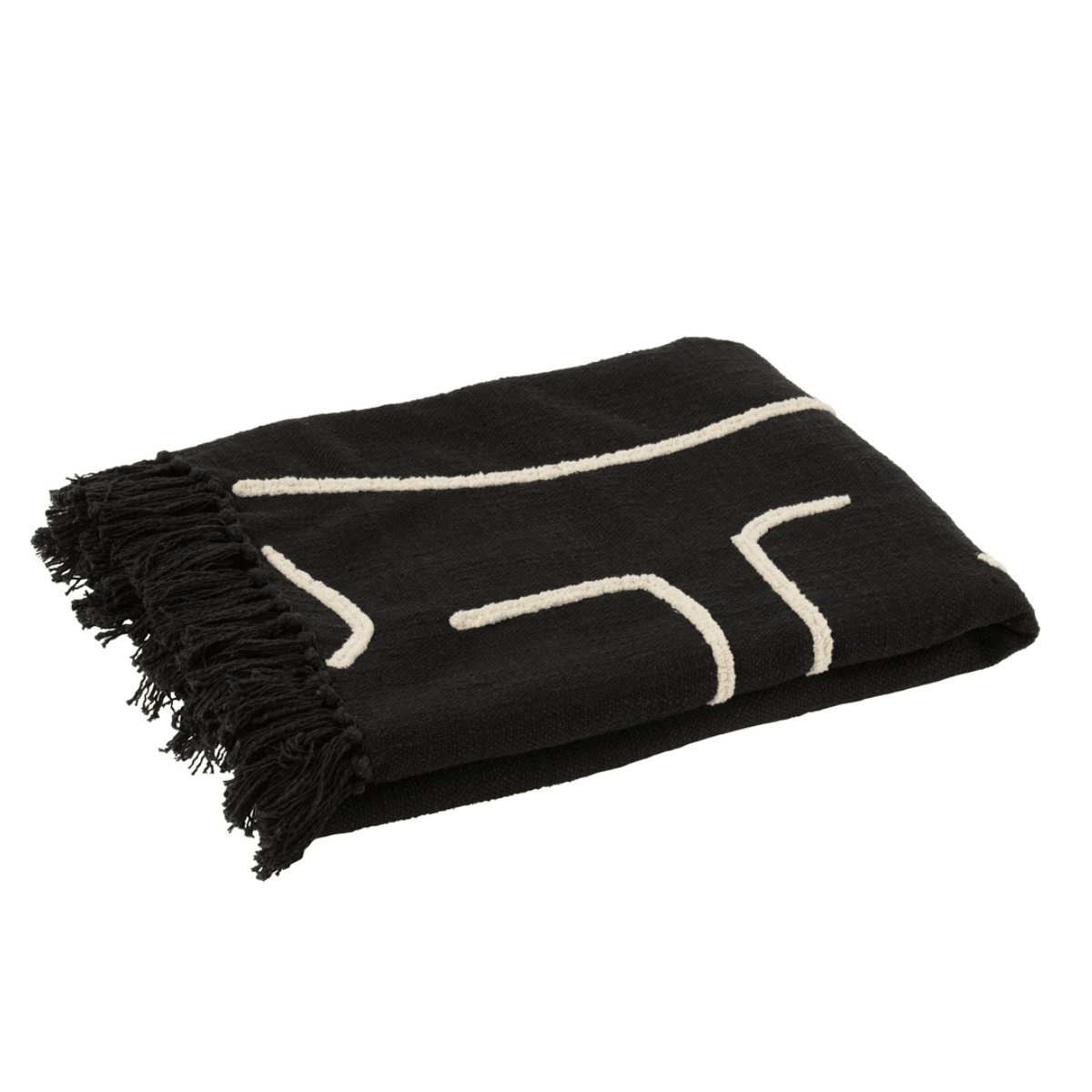 Plaid - Strepen/ Bogen - Katoen - Zwart/ Wit - 130x180cm