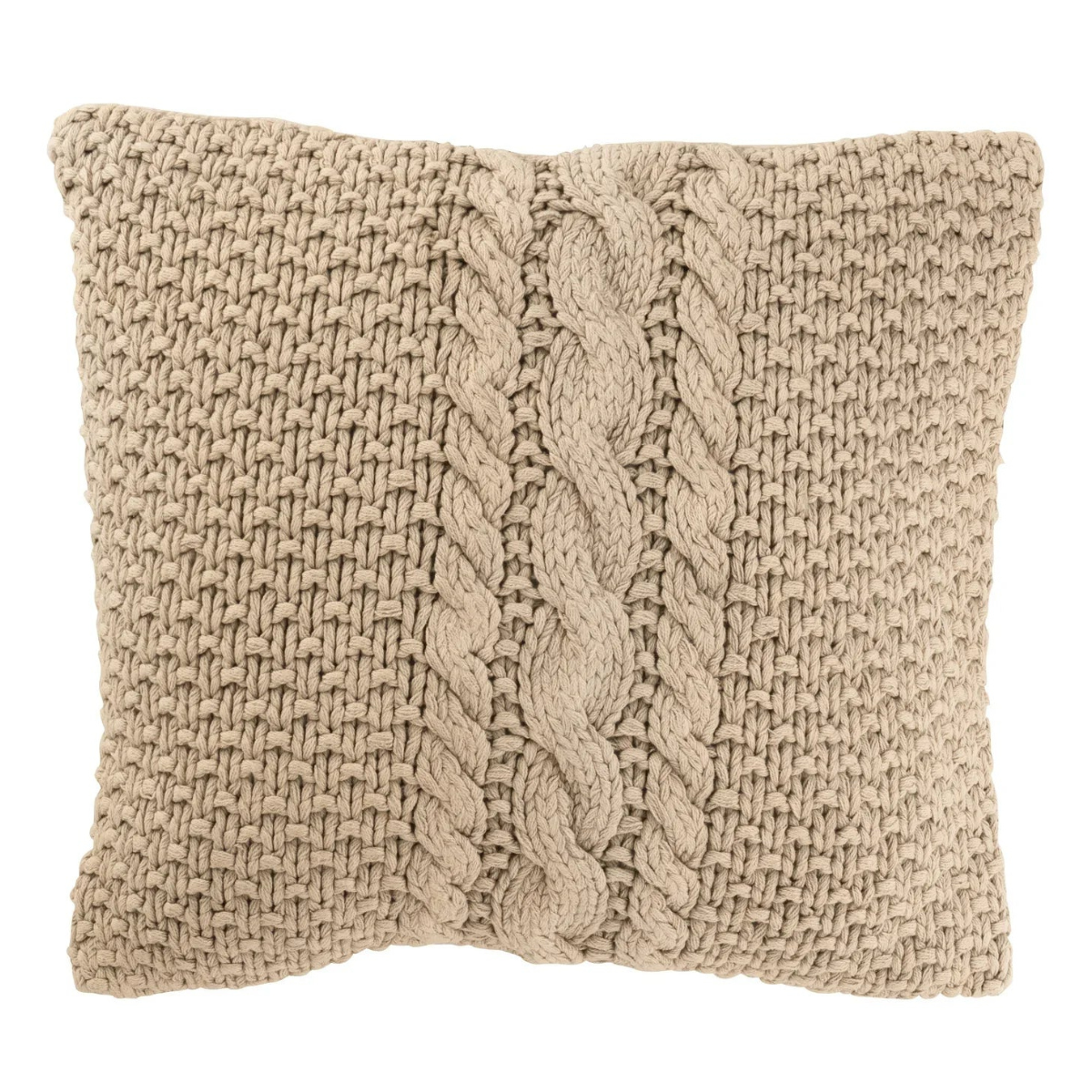 Kussen Gebreid+Vlecht Katoen Gewassen Beige