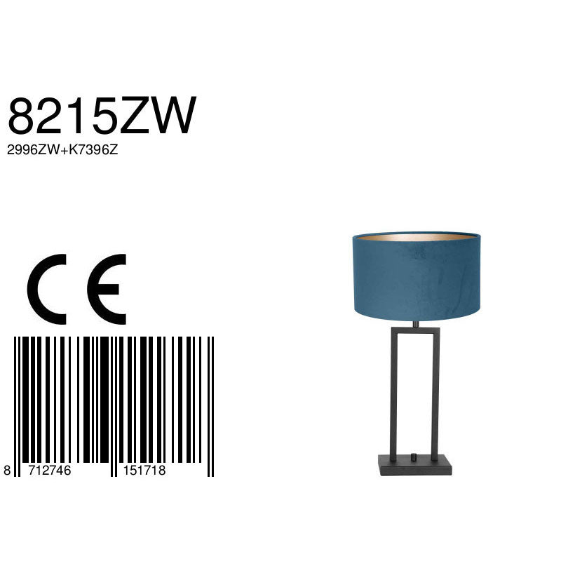 Tafellamp + Lampenkap - Stang - 8215ZW - Zwart/ Blauw - Metaal/ Velours