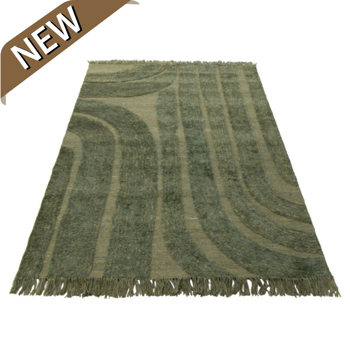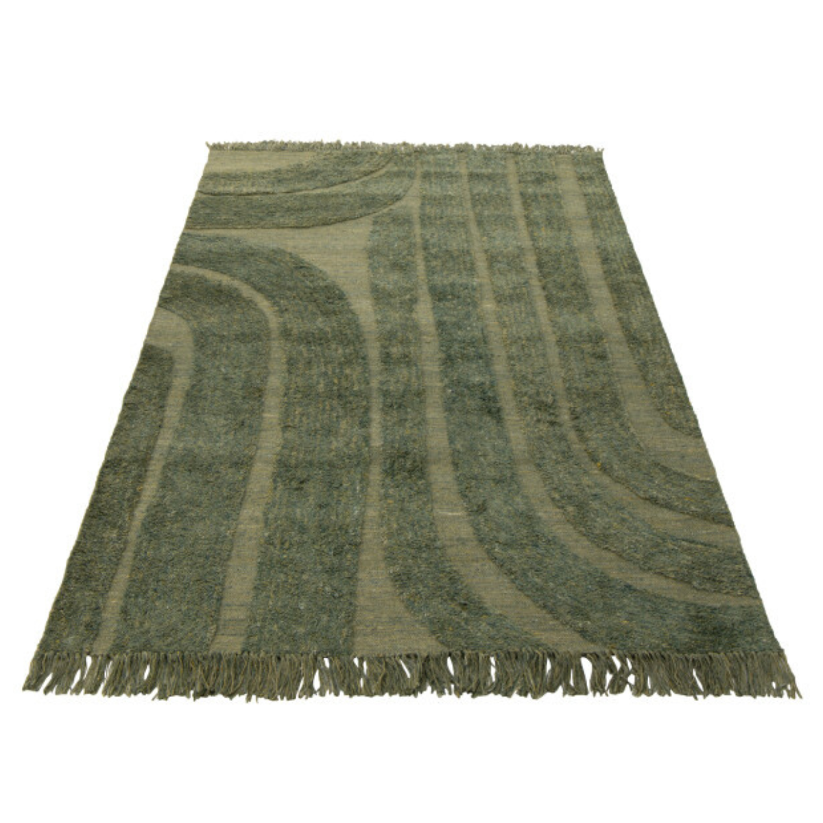 Vloerkleed Afgeronde Lijnen Wol Kakigroen