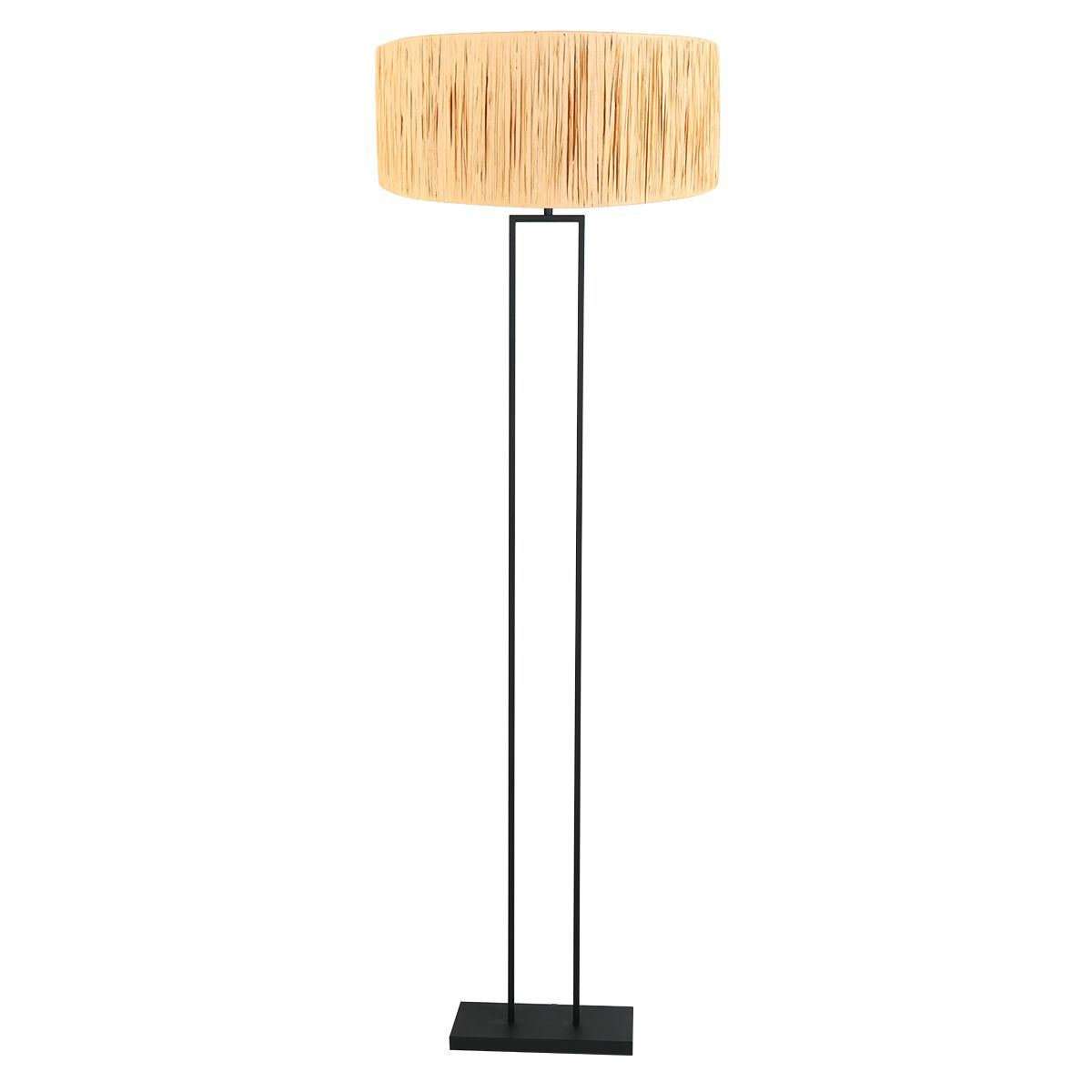 Vloerlamp - Lampenkap - Stang - 3846ZW - Zwart/ Naturel - Metaal/ Zeegras