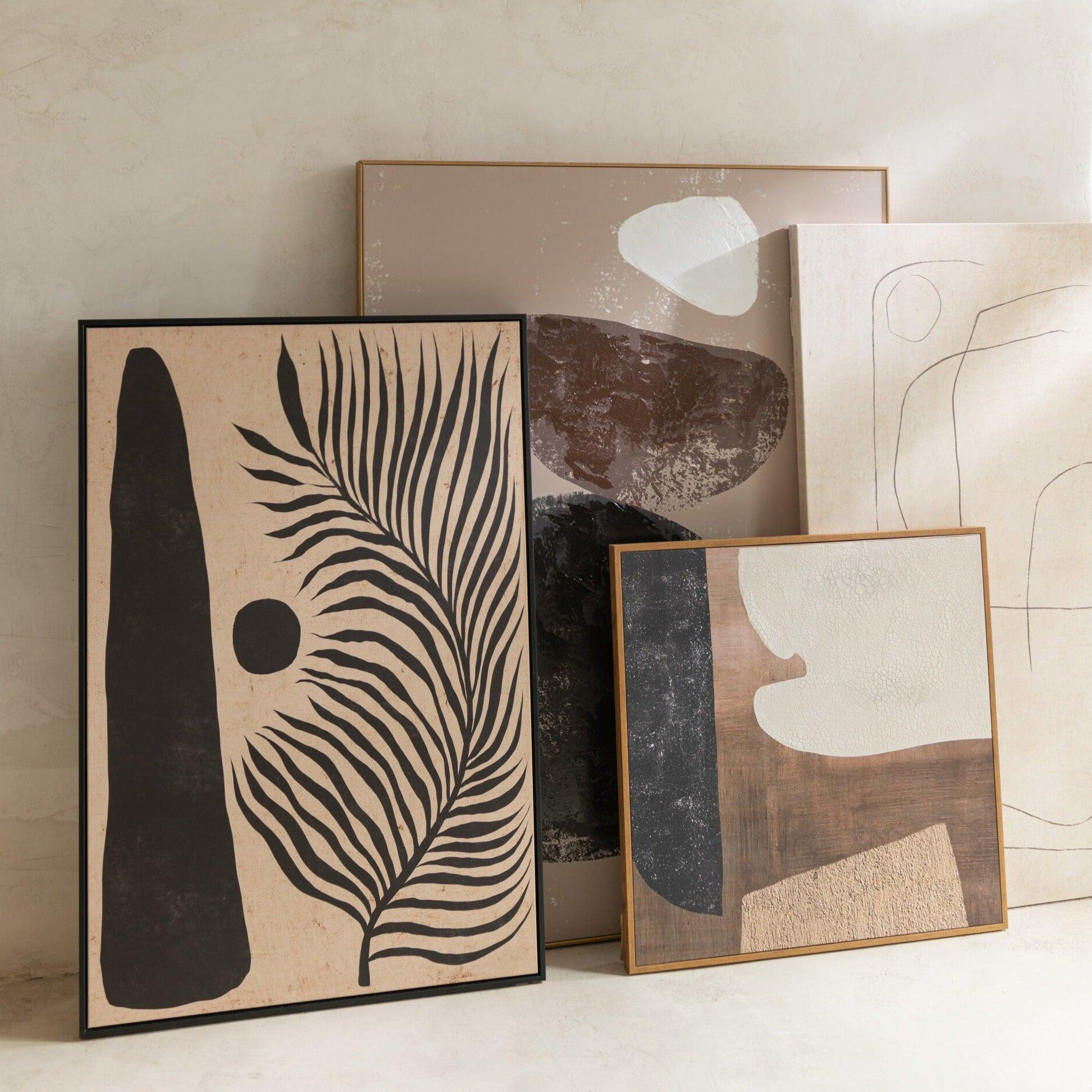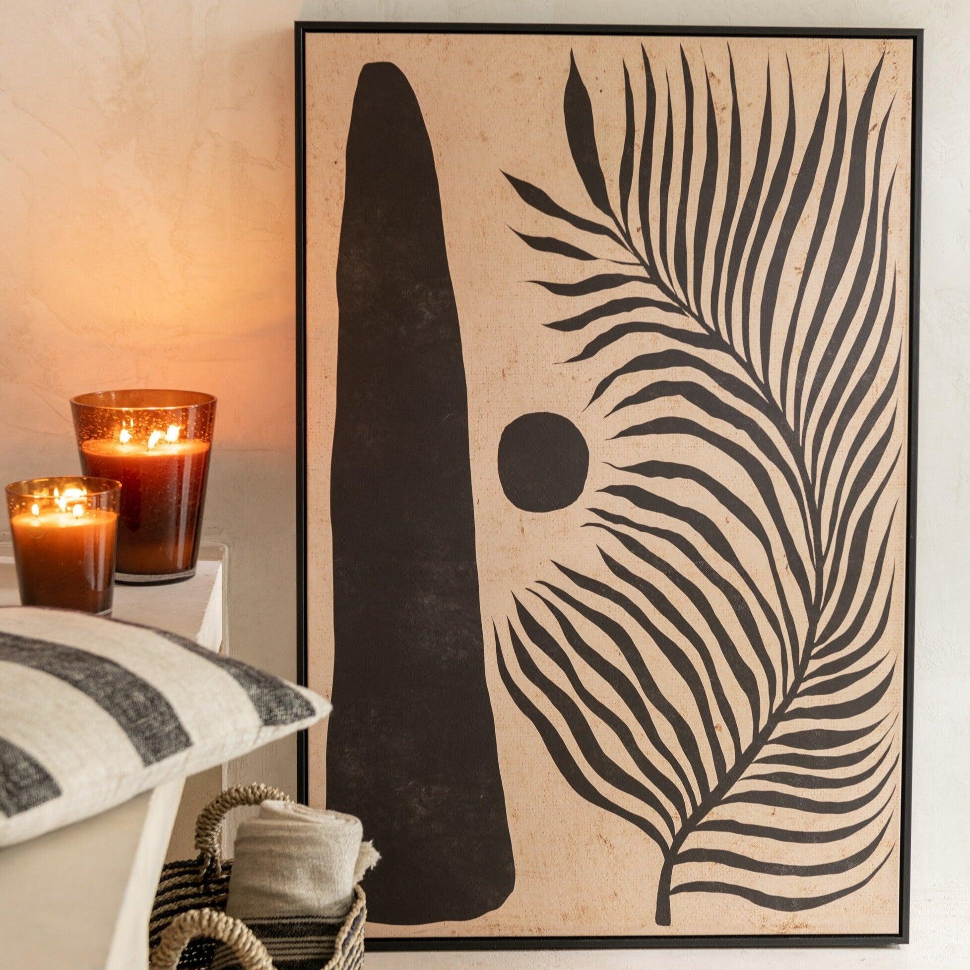 Wanddecoratie - Blad Abstract - Hout/ Canvas - Bruin/ Zwart