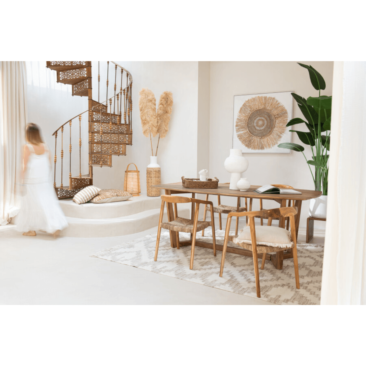 Wanddecoratie Ibiza Cirkel Canvas/Verf Creme/Wit Large