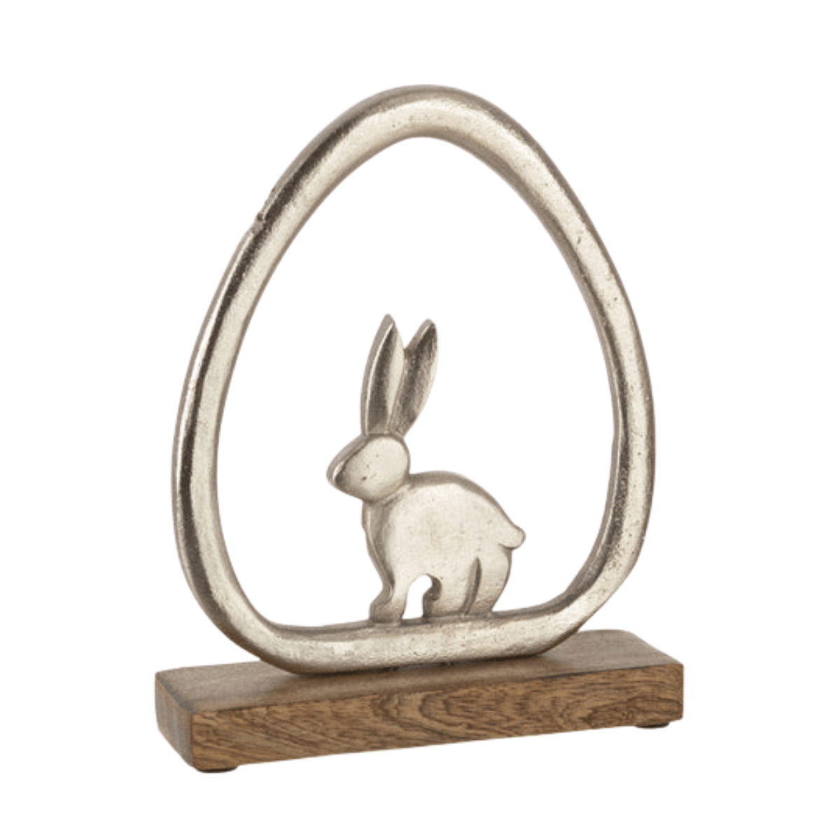 Konijn - Silhouet/ Ei - Mangohout/ IJzer - Zilver/ Bruin - 24cm